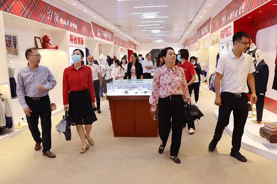 在服飾品牌展示館內,各系列個性化的服飾引來學員們的驚嘆與贊許,同時對公司生產的服裝融入民族傳統元素的理念及生產工藝技術表示贊賞與肯定。