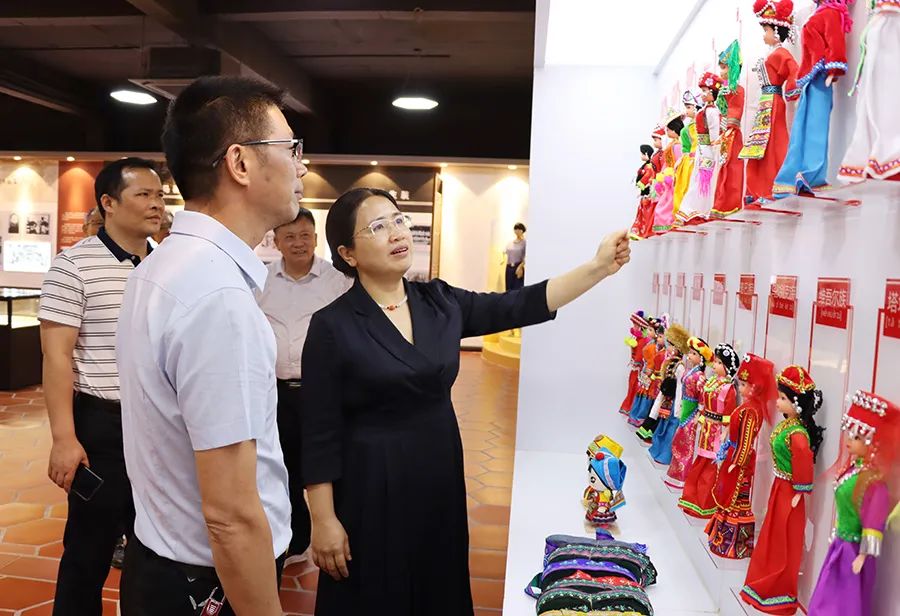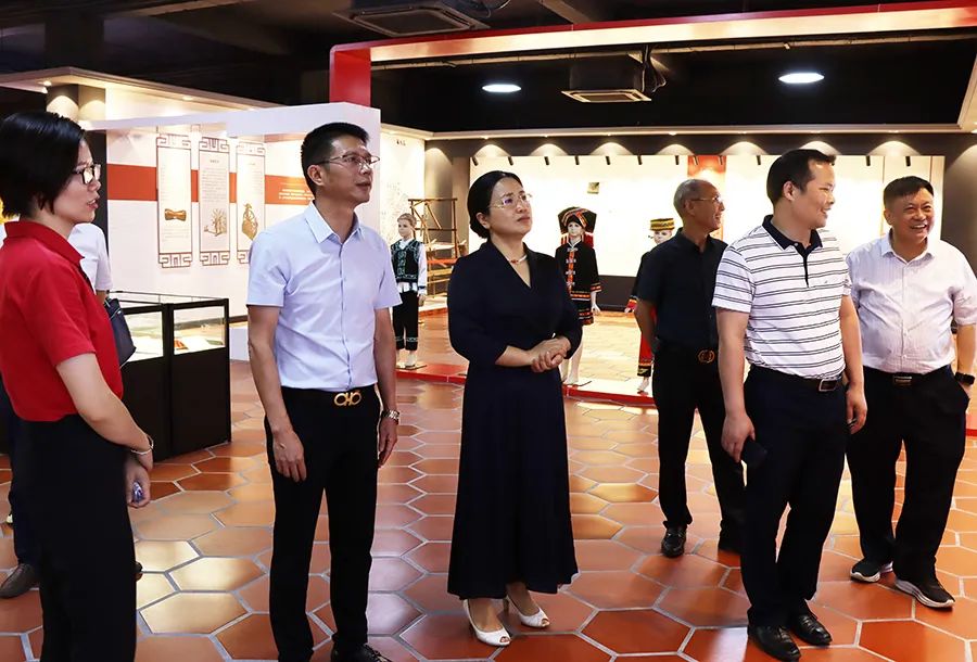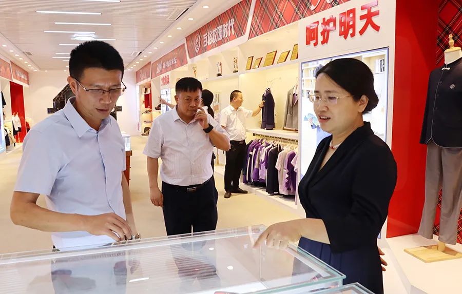 調研組參觀了百裕校服文化館,在參觀過程中,聽取了百裕世紀總經理曾晏來關于文化館的設計理念及校服生產的情況匯報,詳細了解我公司在少數民族地區服裝設計理念,企業在生產經營過程中,牢牢把握鑄牢中華民族共同體意識工作主線,注重企業文化建設各方面的活動及舉措。