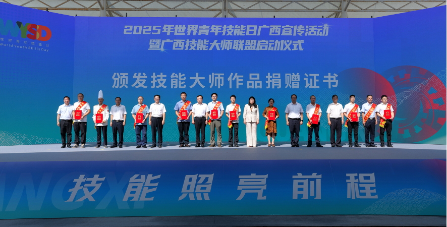 2025年世界青年技能日廣西宣傳活動分為自治區主會場和14個設區市分會場。自治區主會場由自治區人力資源社會保障廳聯合自治區工業和信息化廳、自治區總工會、共青團廣西區委、廣西中華職業教育社共同主辦,自治區供銷社協辦,廣西經貿職業技術學院承辦。自治區教育廳、自治區工業和信息化廳、自治區總工會、共青團廣西區委和廣西中華職業教育社相關負責同志,以及全區各技工院校、企業、機構等1000余人參加自治區主會場活動。百裕集團作為企業代表受邀參與,以實際行動彰顯對技能人才培養的高度重視與責任擔當。