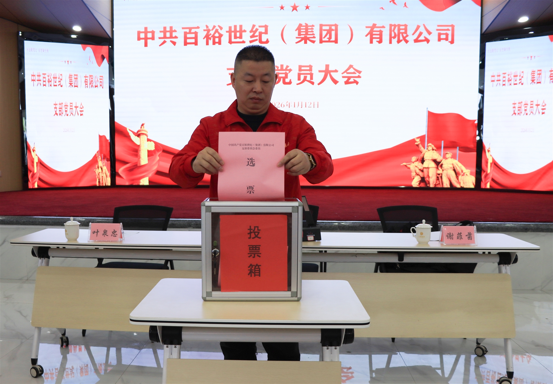 在莊嚴的投票環節,與會黨員懷著高度的責任感和使命感,以無記名投票的方式,鄭重投下了自己的一票。監票人、計票人嚴格按照選舉辦法規定,認真履行職責,現場清點選票、統計結果。最終,大會選舉產生了新一屆中國共產黨百裕世紀(集團)有限公司支部委員會委員。